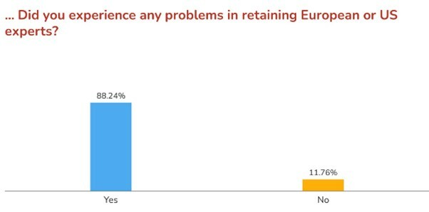 The audience was asked to respond to one more question: “In an arbitration seated in Europe where one of the parties is a sanctioned entity. Did you experience any problems in retaining European or US experts?”